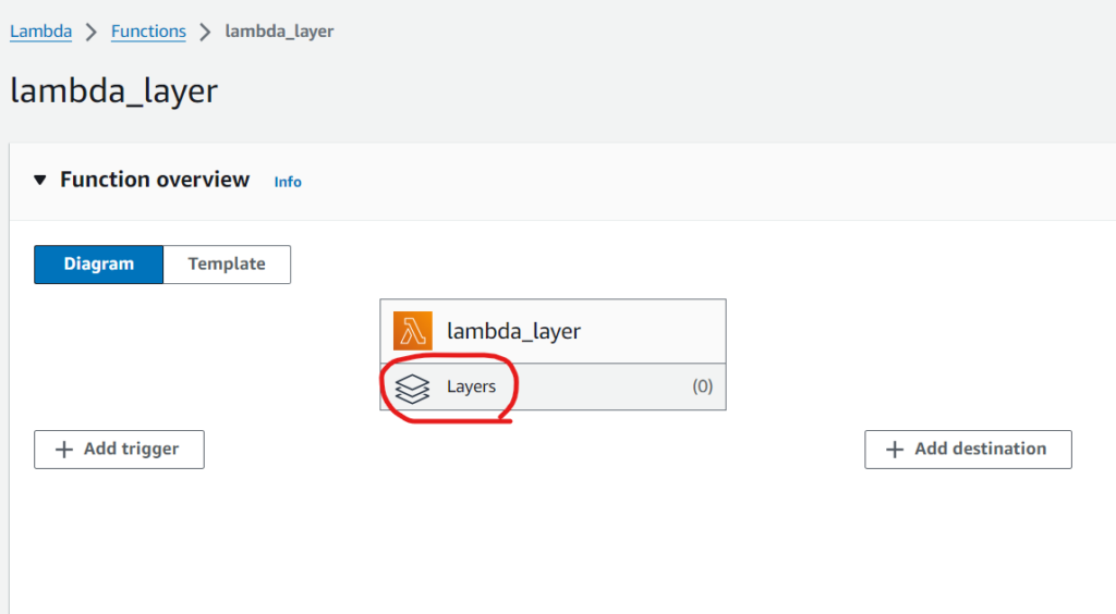 중앙의 "Layer"를 클릭하여 Lambda 레이어를 선택하거나, "Code" 탭 하단으로 스크롤하여 Lambda Layer를 찾자.